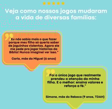 Agora é possível! Com os jogos bíblicos certos, o tempo de tela deixa de ser uma distração — e passa a ser uma forma divertida, segura e edificante de ensinar valores que vão acompanhá-lo por toda a vida.